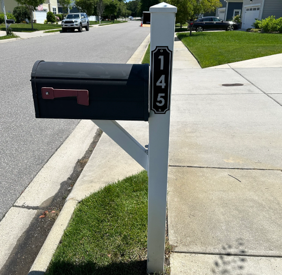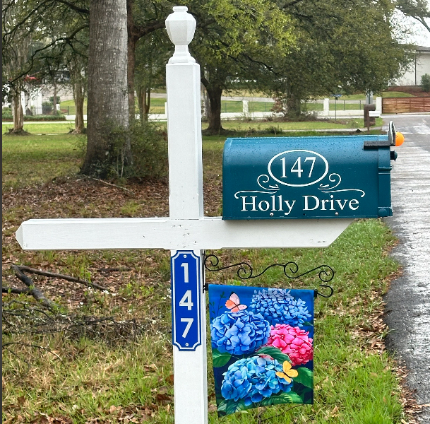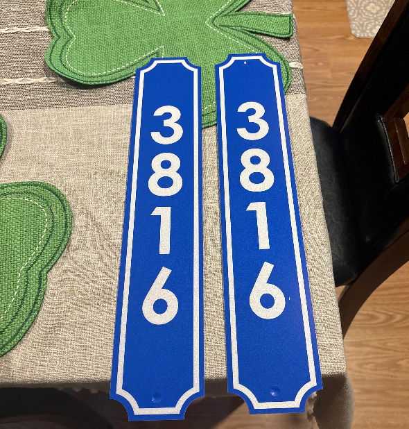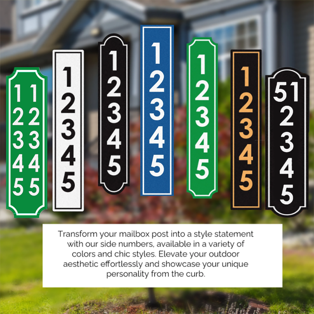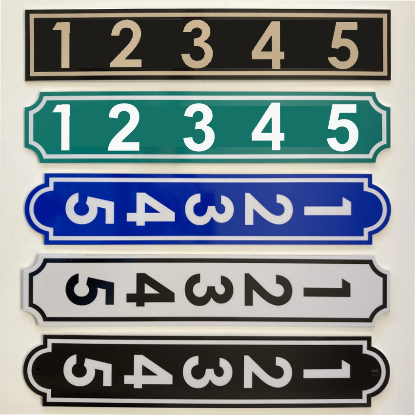 Reflective house address signs for mailboxes and street addresses. Large, easy to read number plates.